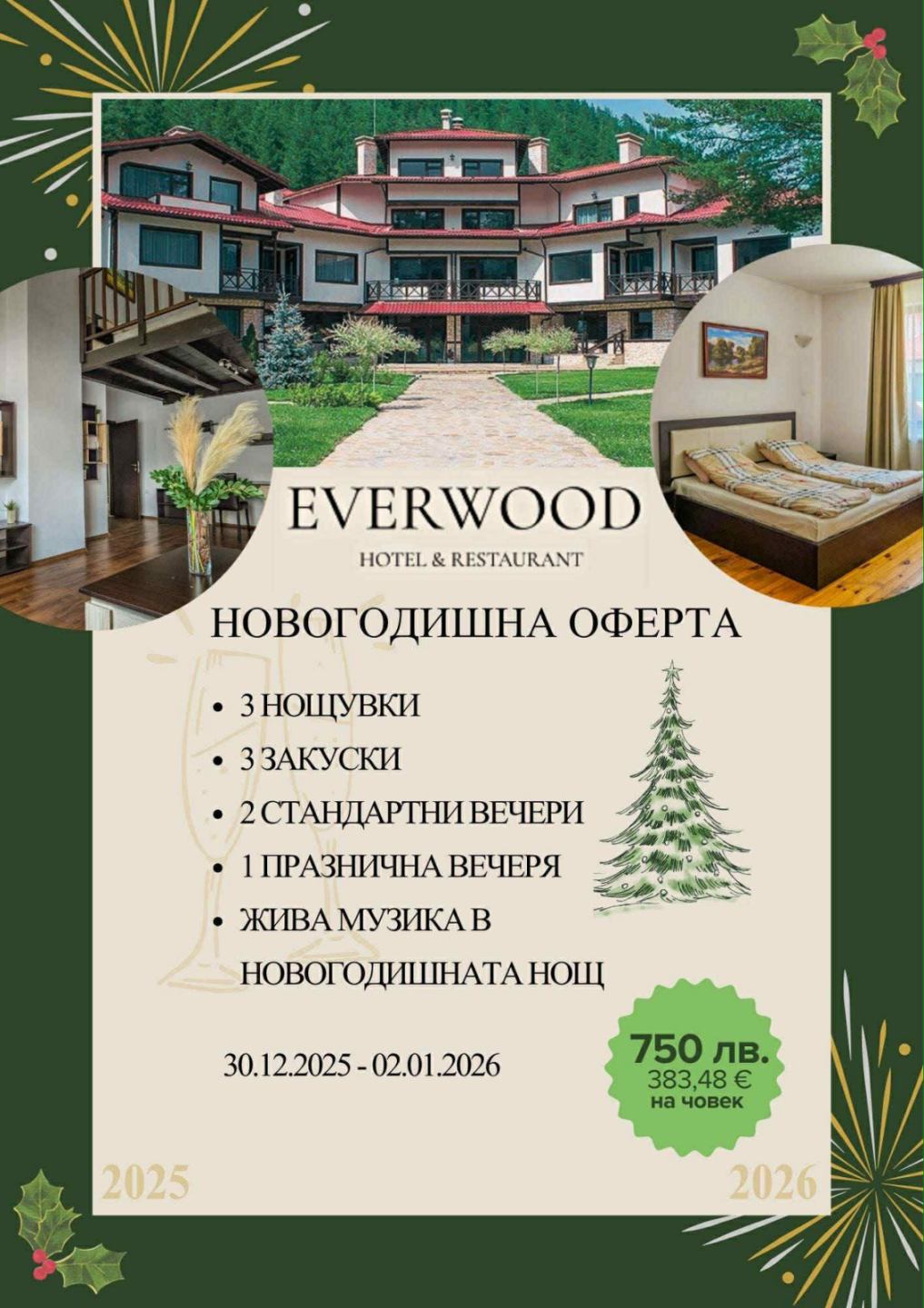 Everwood Hotel and Restaurant е разположен на 1130 м надморска височина, на 19 км от Боровец и 14 км от Самоков. Хотелът се радва на богоизбрано съчетание на свежа и уханна пролет, прохладно лято, слънчева и топла есен, мека и снежна зима.