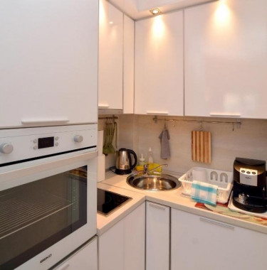 хладилник в стаята, LCD/плазма в стаята, кабелна телевизия в стаята, кафемашина в стаята, хавлиени кърпи в стаята, гардероб за дрехи, безплатни принадлежности в банята, спално бельо/чаршафи, шкаф/етажерка - дрехи, балкон/тераса, прибори и съдове в стаята, фурна/печка, котлон, кухненска маса, ютия за гладене, автоматична пералня, мраморна/теракотна настилка на пода, паркет/дървен под, частен/самостоятелен апартамент в сградата,