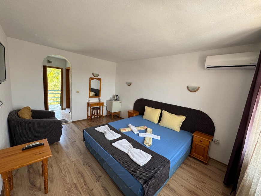 Разположен в прохладна гора той разкрива неповторим изглед към планината и морето със златист пясък и кристална вода. Спокойствието и тишината ви предоставят възможност за една незабравима почивка.