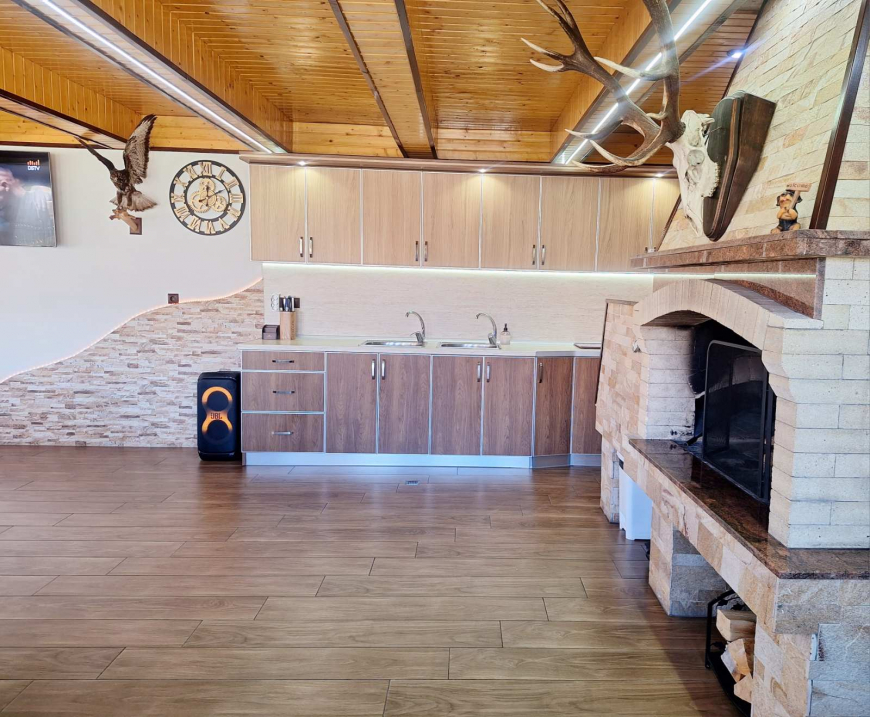 На разположение на гостите на хотела са безплатен паркинг, огромна градина с детски кът /люлки пързалка пейки, къщичка, топки и др./ Също така гостите ползват безплатно барбекю с пещ и камина което побира до 50 човека. Оборудвано е с голяма кухня /зимна и лятна/, печки, фурна, котлони, микровълнова, съдомиялна, хладилник, телевизор, санитарен възел, парно отопление, посуда всякаква необходима за готвене.