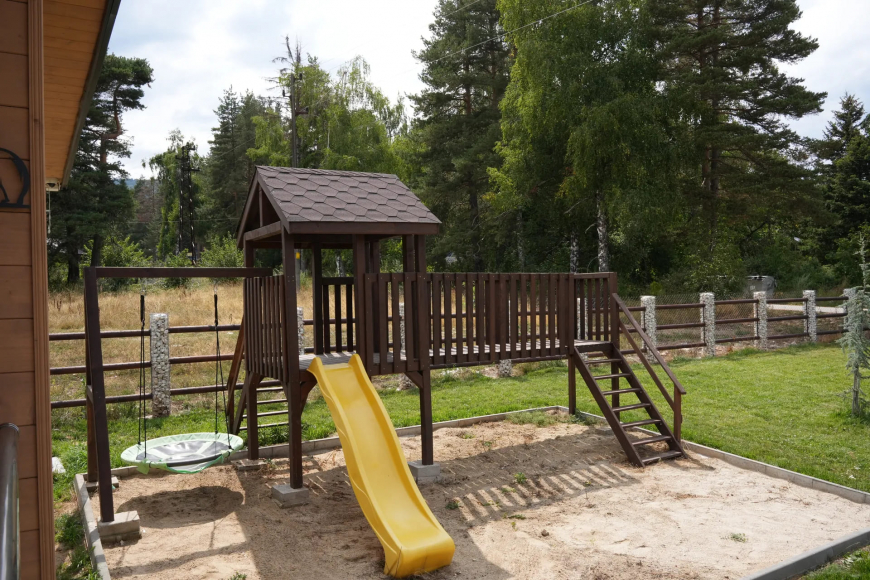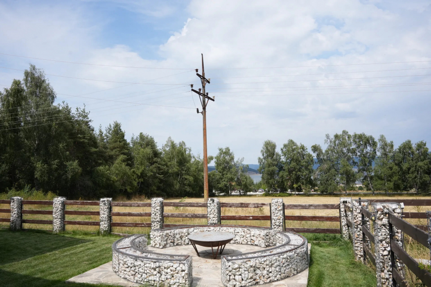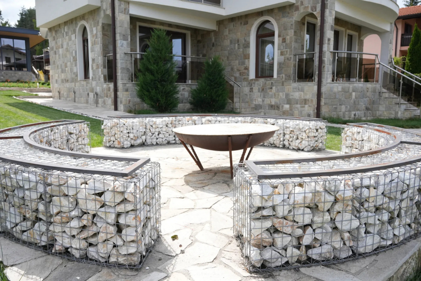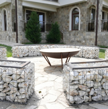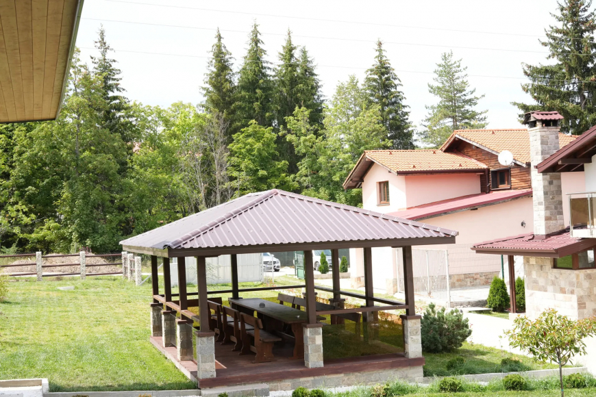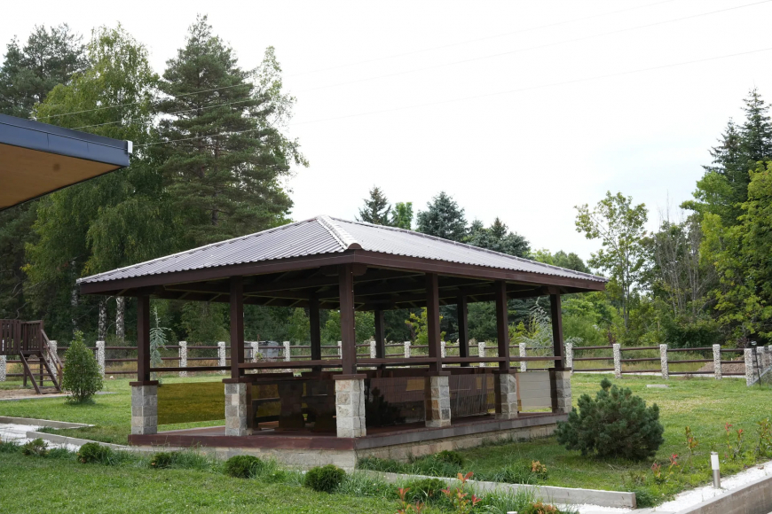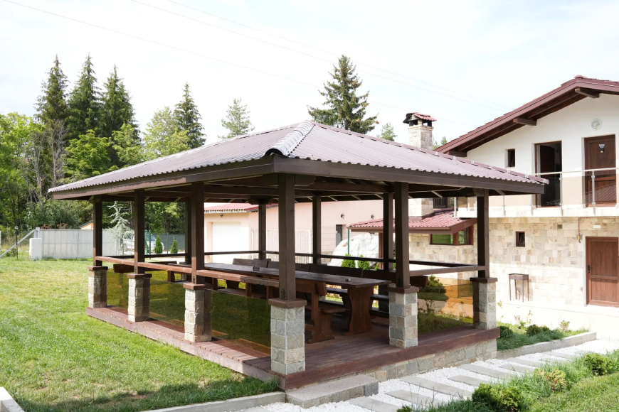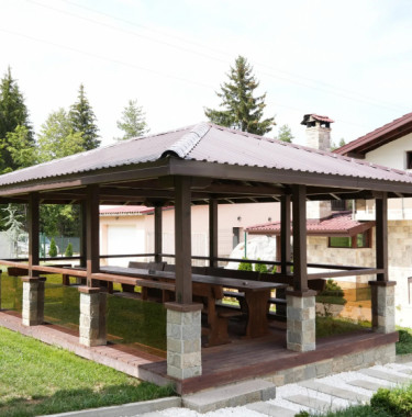 На разположение на гостите е външно закрито барбекю оборудвано с камина и необходимата посуда. В барбекюто има изградена пещ на дърва, в която може да се приготвят кулинарни изкушения като: агне на пещ, печено прасенце, печена пуйка и др. от самите гости или от наш готвач.
