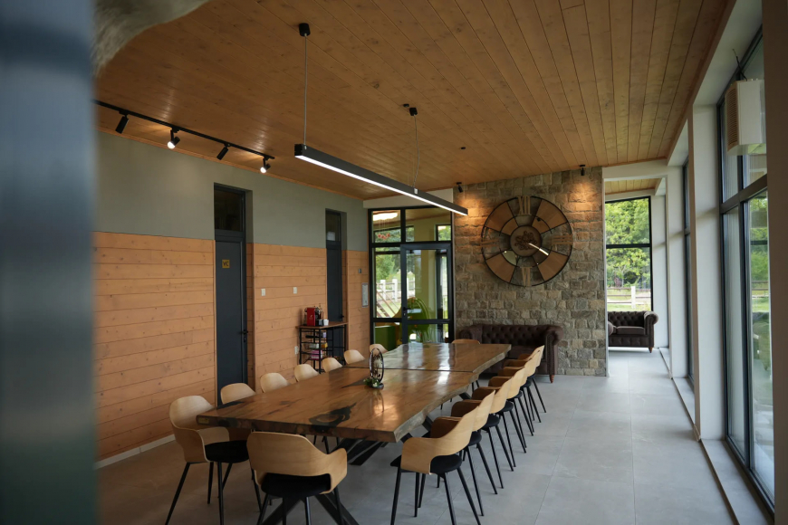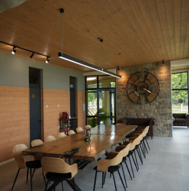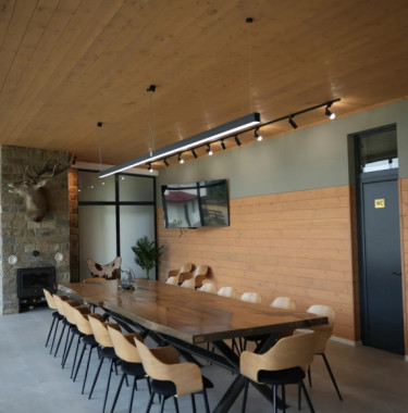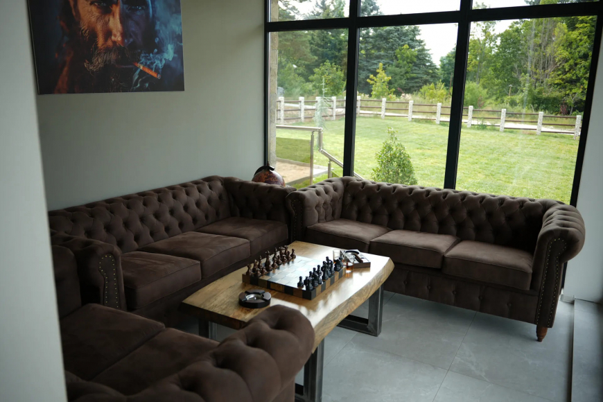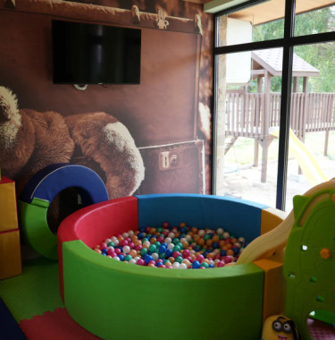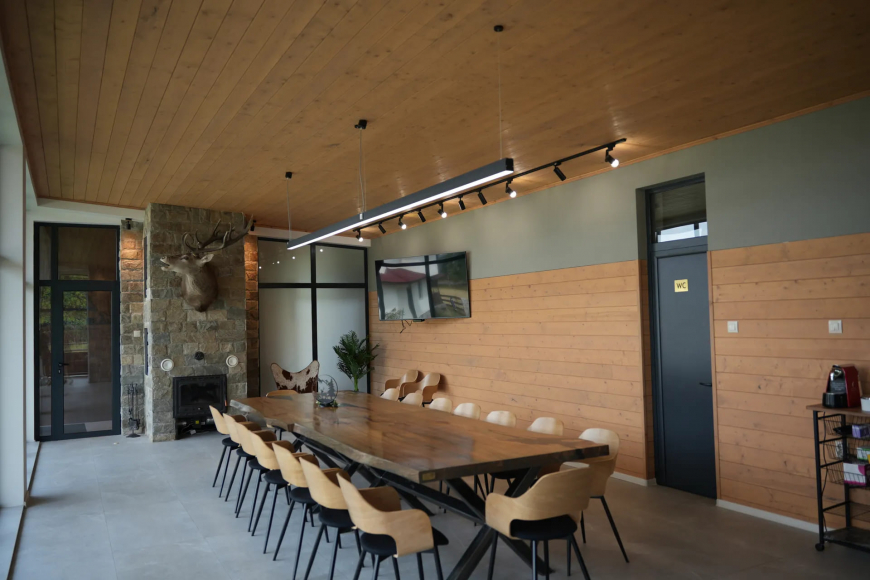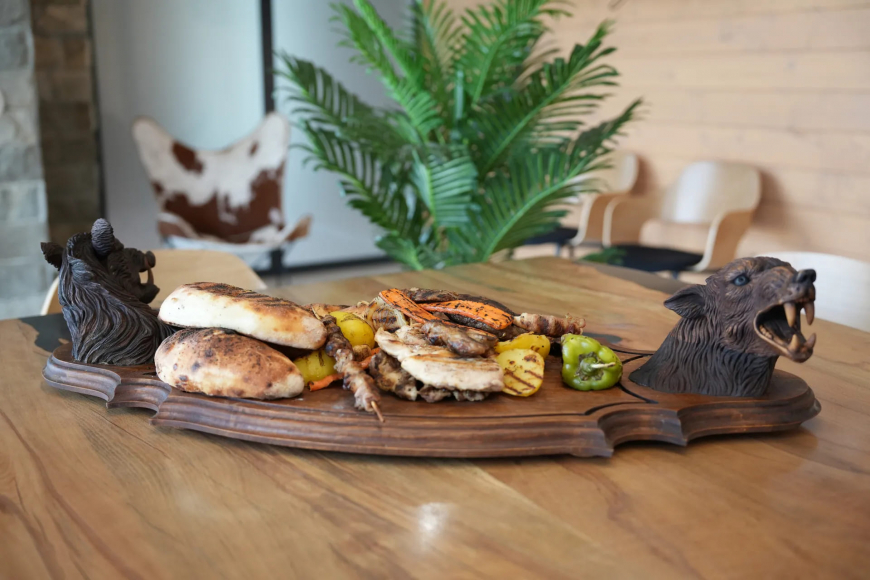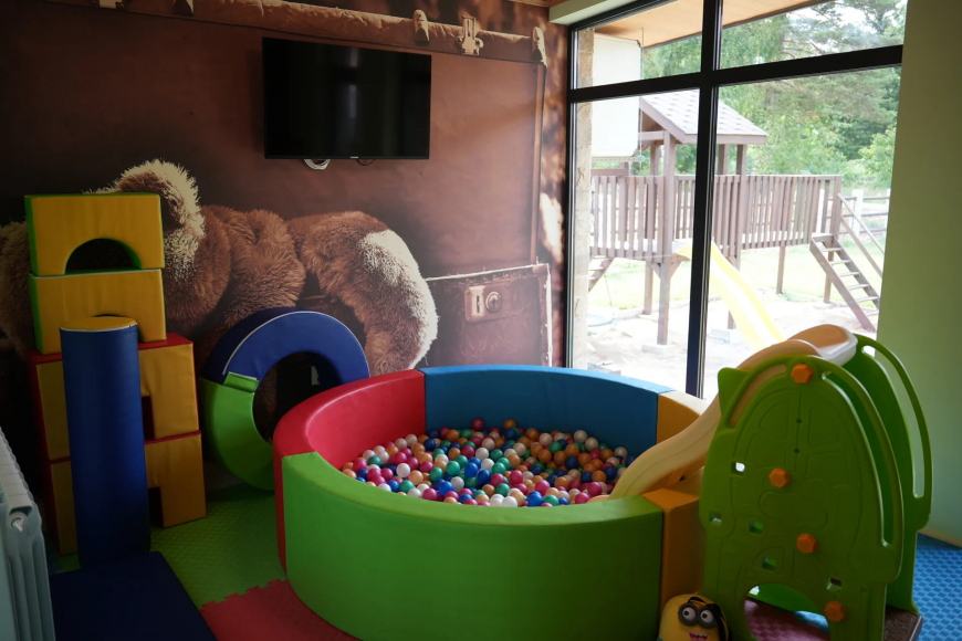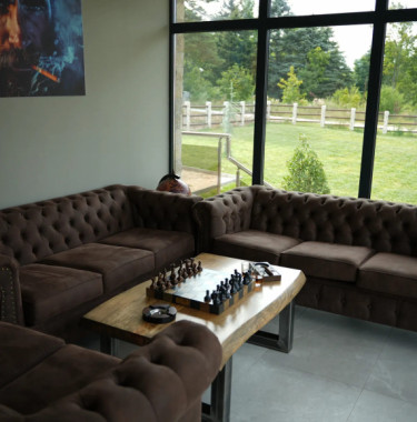 На разположение на гостите е външно закрито барбекю оборудвано с камина и необходимата посуда. В барбекюто има изградена пещ на дърва, в която може да се приготвят кулинарни изкушения като: агне на пещ, печено прасенце, печена пуйка и др. от самите гости или от наш готвач.