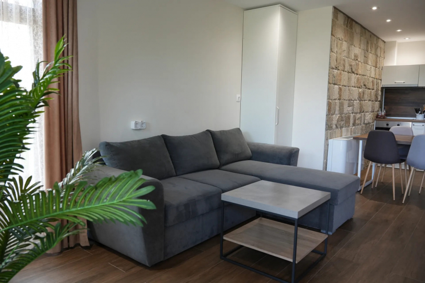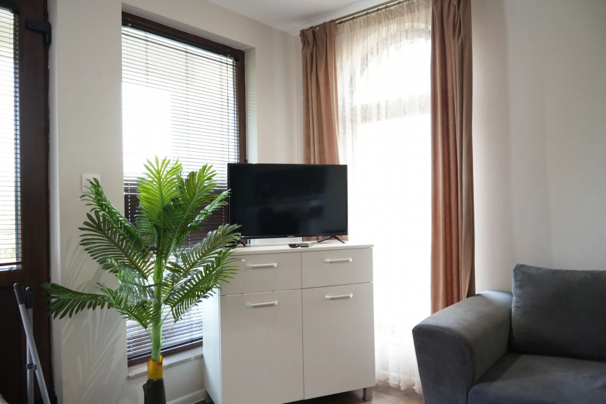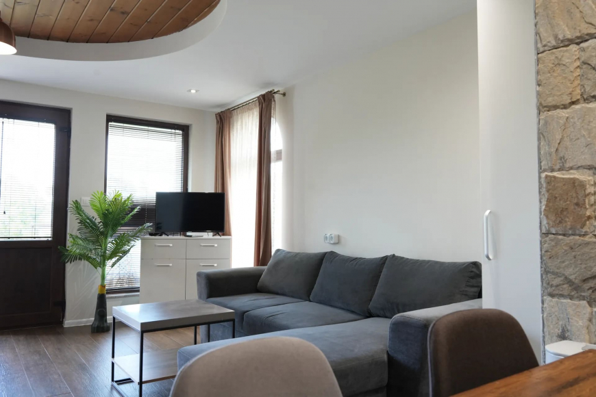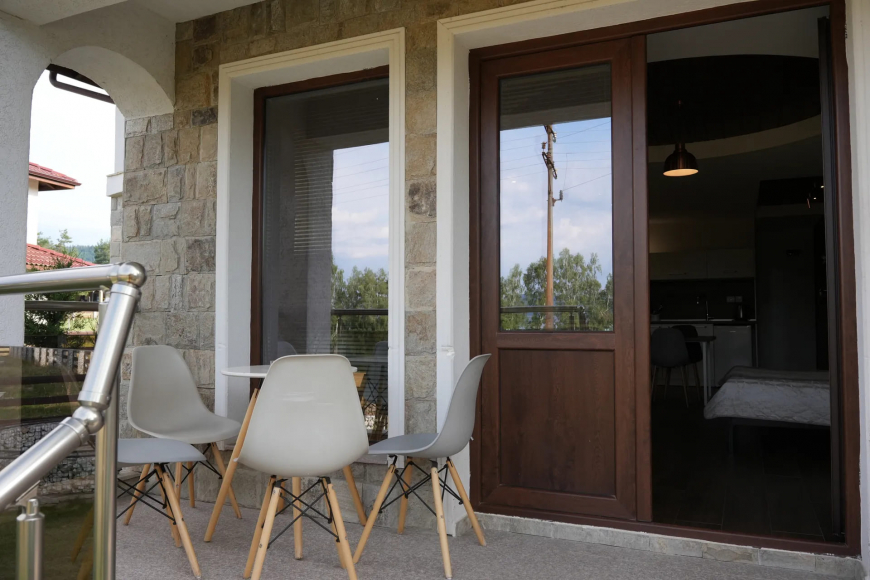 Всички бани и тоалетни са самостоятелни. Апартаментите са с големи тераси и изглед към язовир Батак.