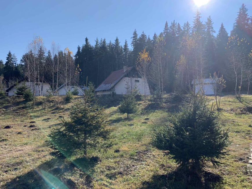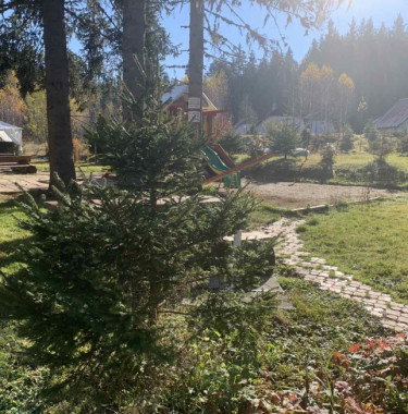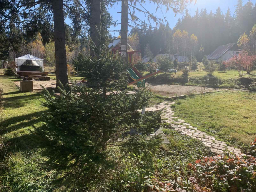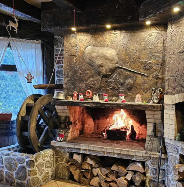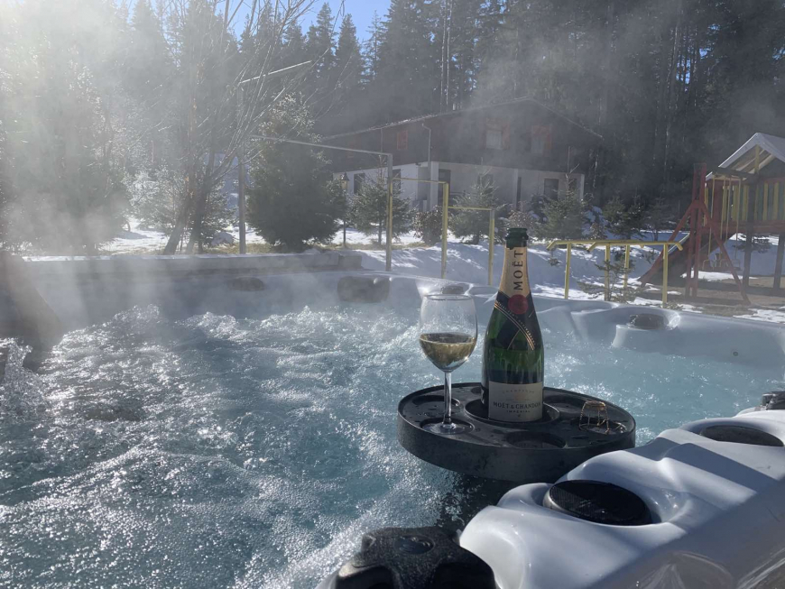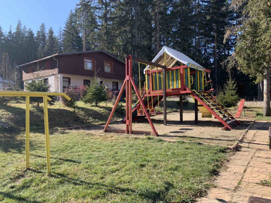 Самостоятелна алпийска къща с 4 броя мезонети, всеки от който има хол с мека мебел и телевизор, 2 двойни стаи и санитарен възел