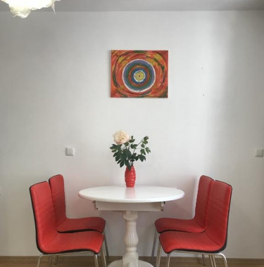 TV, хладилник в стаята, LCD/плазма в стаята, хавлиени кърпи в стаята, гардероб за дрехи, WC , душ в банята, спално бельо/чаршафи, шкаф/етажерка - дрехи, балкон/тераса, микровълнова печка, ел. кана за кафе, прибори и съдове в стаята, котлон, кухненска маса, автоматична пералня, вана/душ, гледка към града, разтегателен диван, трапезен кът / трапезария, частен/самостоятелен апартамент в сградата,