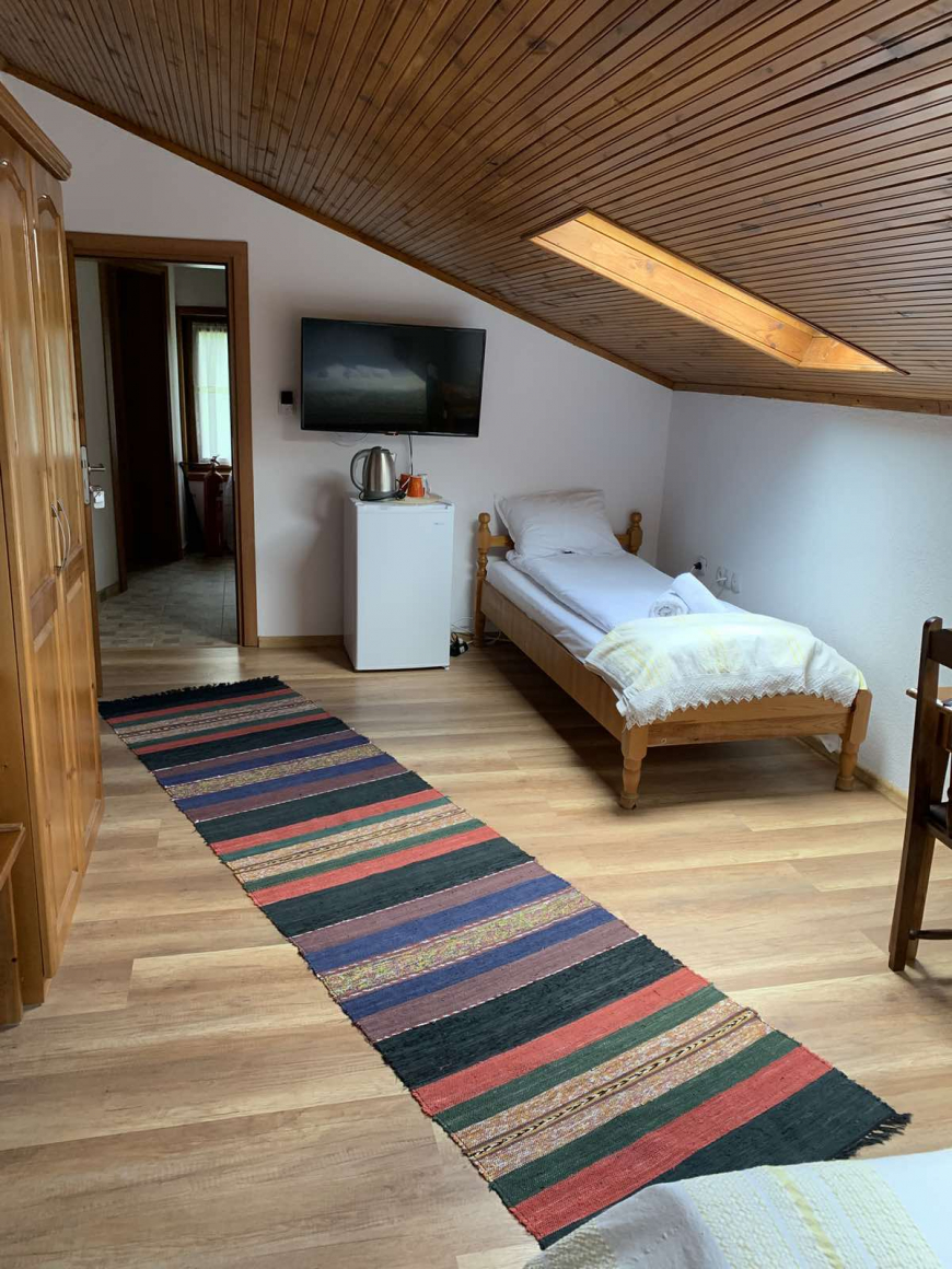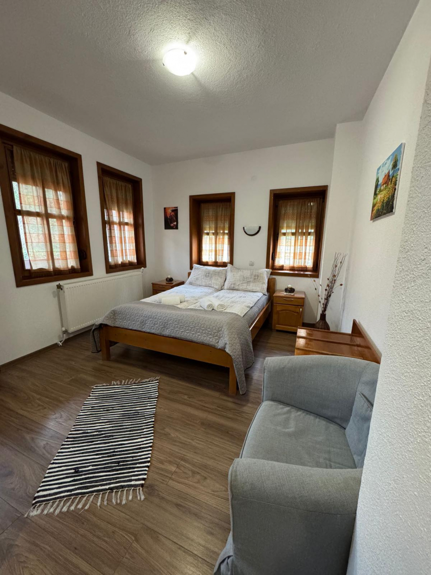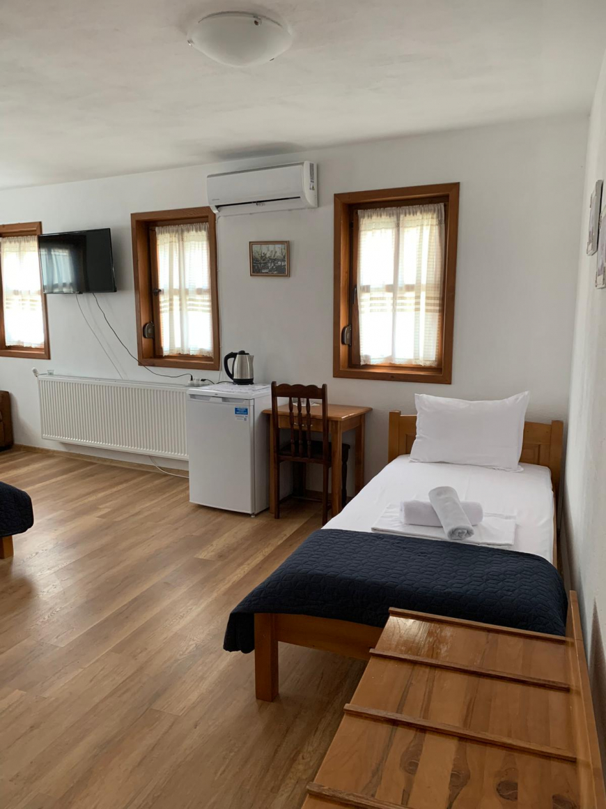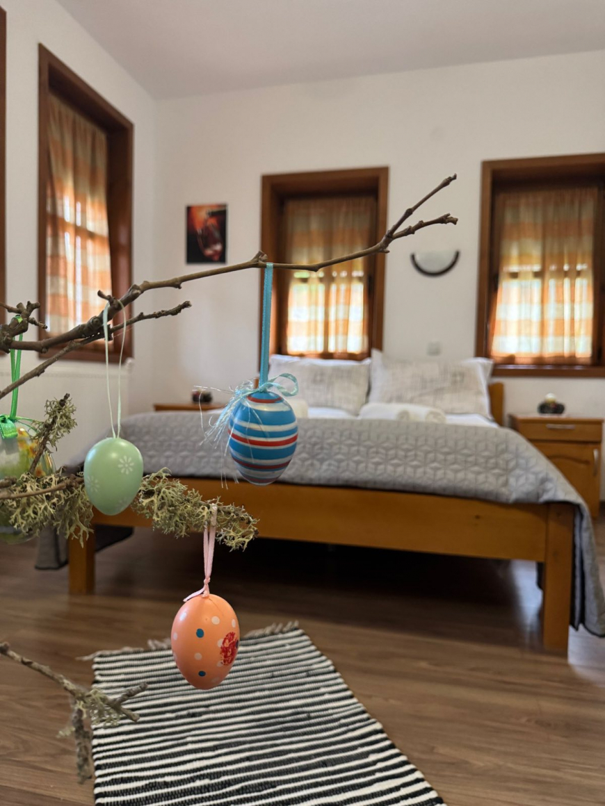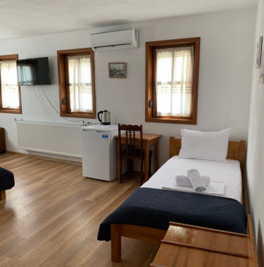 На разположение са девет традиционно обзаведени стаи, всяка с парно отопление, собствена баня и телевизор, гарантиращи ви комфорт и уют след дългите разходки из Мелник и околностите.