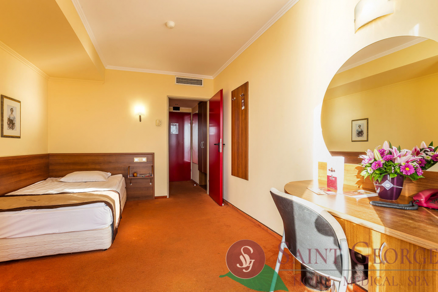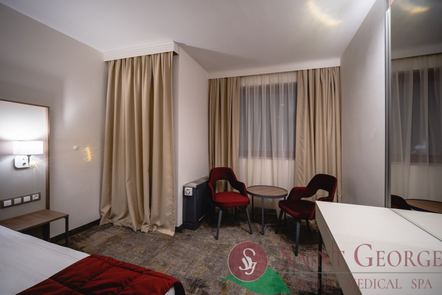 Мястото за настаняване има 1 звезда. СПА Хотел Сейнт Джордж предлага пет вида настаняване – двойна стая с изглед към парка, комфортна двойна стая с морски изглед, стандартно студио, двойна стая с изглед към морето и фамилна стая. Степента на почистване и уюта са назовани от отсядали клиенти като много добри. Изключителната почивка може да бъде улеснена от ползване на парна баня, уелнес процедура (с обвиване), пилингова уелнес процедура (за тяло), уелнес терапии/процедури тяло, процедури/терапии коса, гримьор, уелнес процедури за лице, козметични процедури и сауна срещу допълнително заплащане. Гостите имат възможност да използват предварителна заявка на диетично меню, бар - питейно заведение и ресторант в обекта. Допълнително предлагана екстра е фитнес в обекта. Това място за настаняване предлага на своите туристи WIFI в публични зони - включен в цената. Тази опция е определена от реални потребители като добра. СПА Хотел Сейнт Джордж отстои на 10.2 км. от Летище Бургас и на 77.1 км. по въздух в права линия от Летище Варна. По време на престоя си децата ще имат възможността да използват детски ТV канали. Регистрирането в обекта е възможно след 14:00 часа, а отрегистрирането трябва да е преди 12:00 часа. Отседналите в обекта ползват рецепция 24 часа. Клиентите с лична кола може да пожелаят да използват платен паркинг (обществен) близо до обекта.