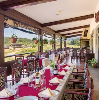 Ресторантът е със 150 места и предлага ястия, приготвени на барбекю, пещ и чеверме. В менюто са включени изискани вкусни ястия от българската и европейска кухня, както и подбрани местни специалитети и богат асортимент от вина Просторната му тераса открива неповторима гледка към величествените върхове на Рила и Пирин. Топлина, романтика и задушевност придава камината на ресторанта, край която гостите могат да поговорят с чаша любимо питие в ръка.